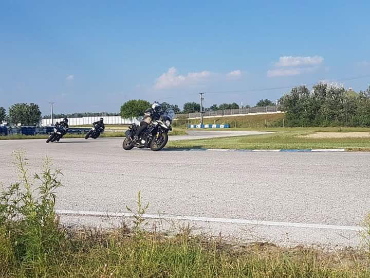 The training was much more structured. We started with a short theoretical intro to cornering and the track, then proceeded to go around with 30 then 40 and 50 km/h without using the breaks to get comfortable on the track.